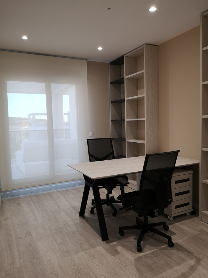 En cuanto a la vivienda, además de su gran calidad de acabados, destacaríamos la orientación de la misma al exterior con sus amplias cristaleras y terrazas. Los colores claros de las paredes así como la abundante entrada de luz, dotan a las estancias de gran luminosidad y amplitud, destacando y embelleciendo todas las instalaciones interiores y como no, los muebles y tapizados.