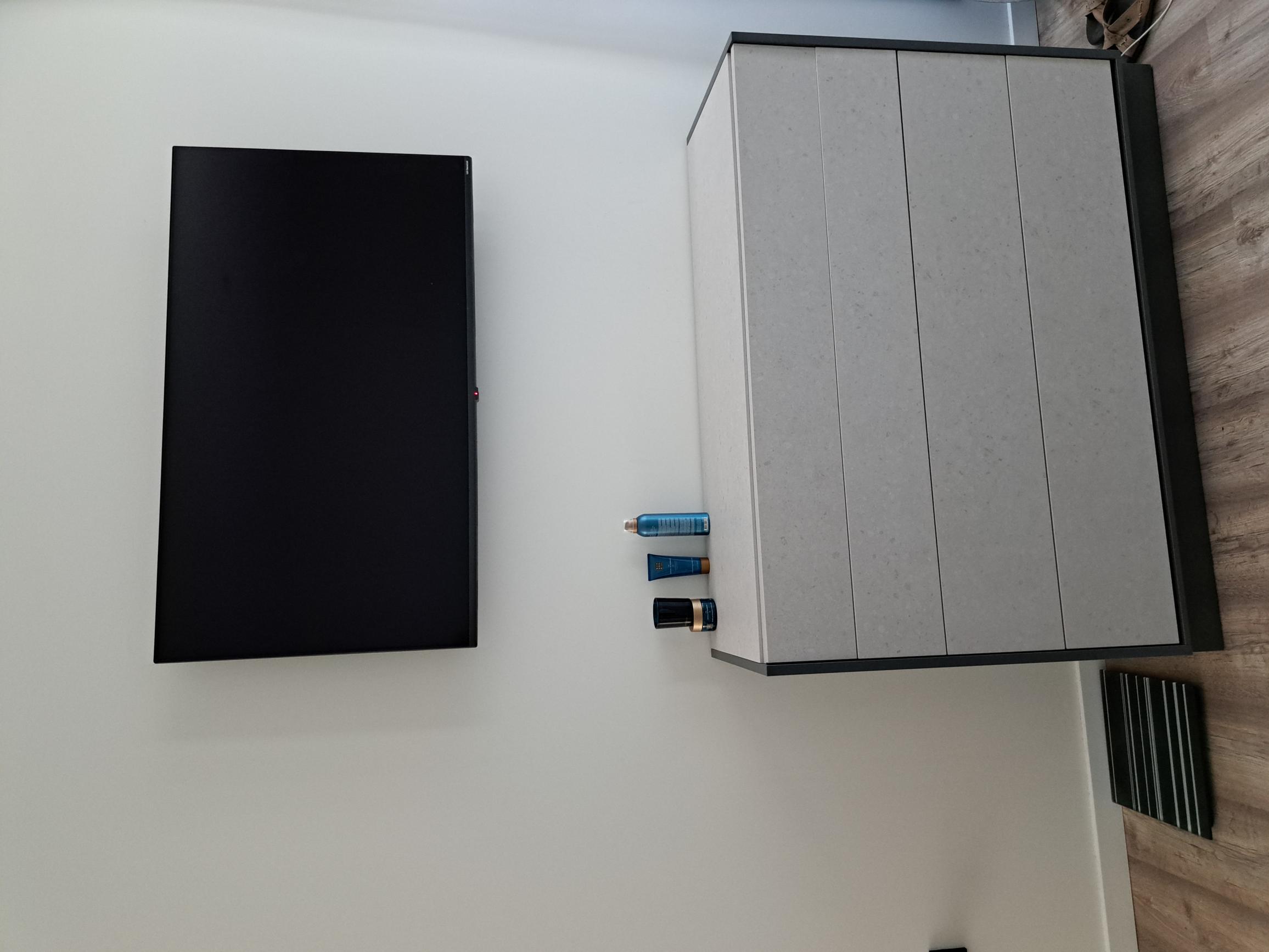 A LOS PIES DE LA CAMA HEMOS DISPUESTO UNA CÓMODA Y SOBRE ELLA SE HA INSTALADO EL T.V.