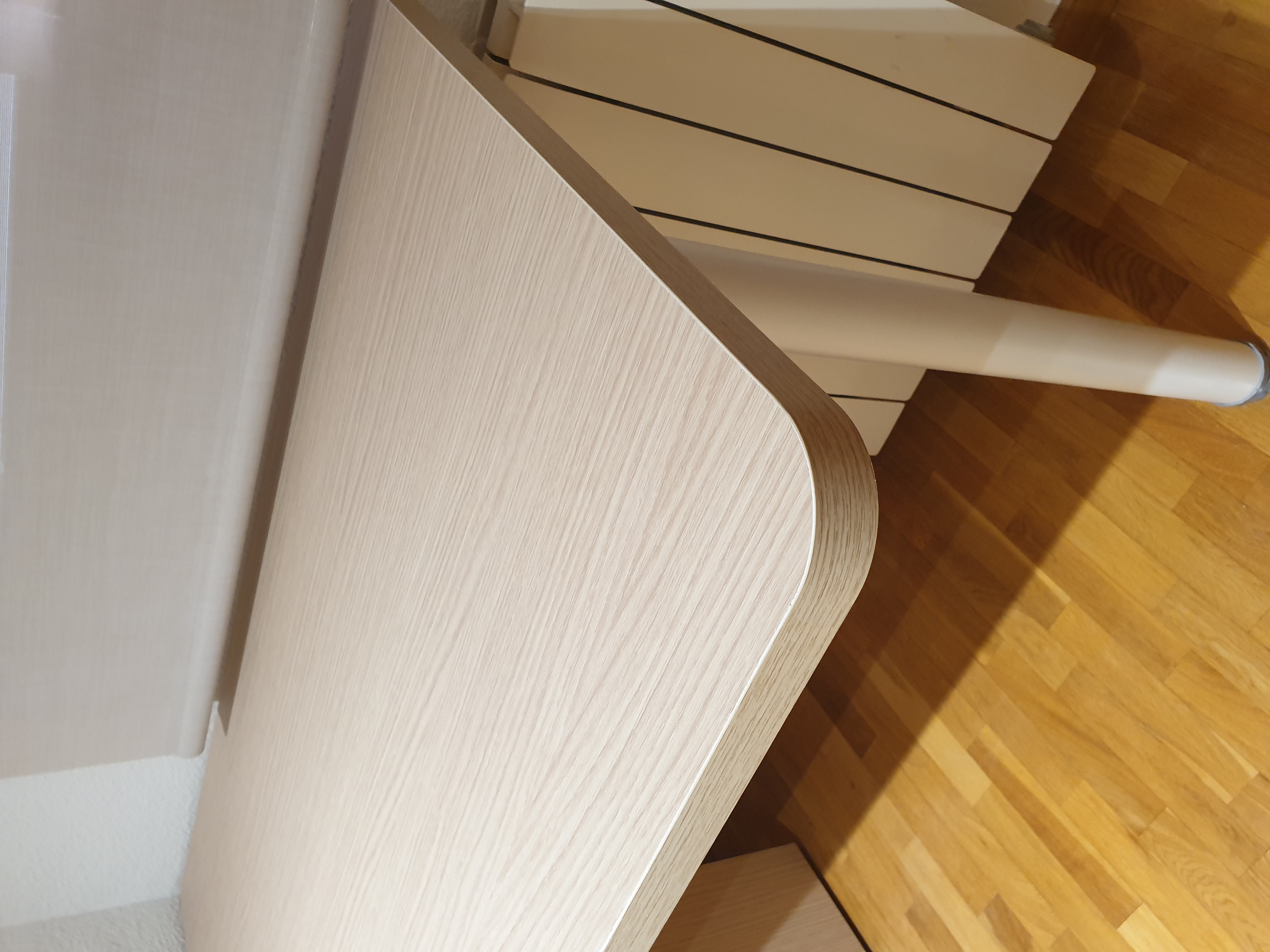 Los colores empleados son un fresno natural combinado con un blanco y un nacar en los tiradores, estos tipo asa redondeada, que visten y decoran muy bien los frontales del mobiliario.