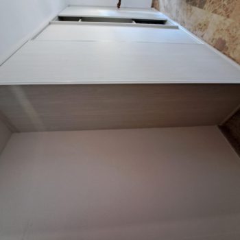 Por un lado tenemos un armario de 6 puertas A MEDIDA y de más de 3.00m. de largo para un dormitorio y que junto al mismo hemos ubicado un cabezal tapizado y un canapé fijo a juego. Para este armario hemos cajeado un pilar en la parte derecha del mismo. Por otro lado hemos instalado…